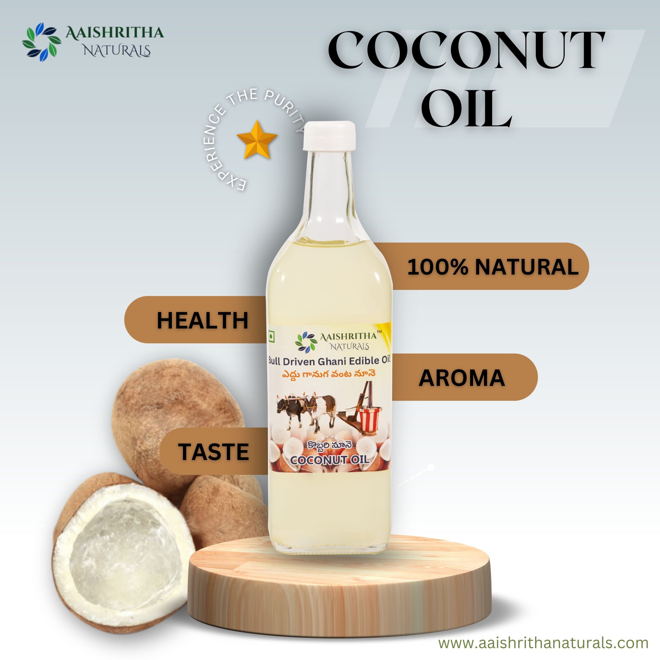 Order Aaishritha Naturals Bull-Driven Coconut Oil Today!